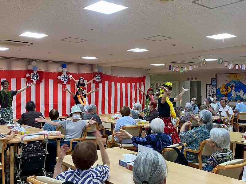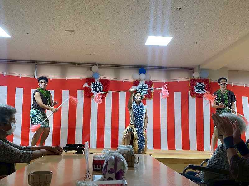 #南東北#デイサービス#八山田#敬老会#お祝い#フラダンス#ファイヤーナイフ