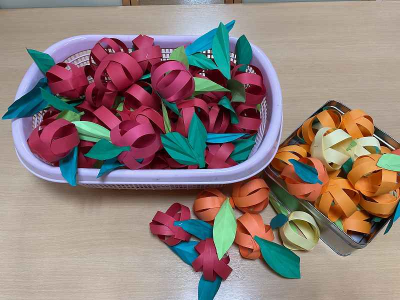 10月の創作活動 ~リンゴとミカン~ 南東北デイサービスセンター八山田:2025.10.23 10月の創作活動はリンゴとミカン作りです。カゴいっぱいにできあがりました。 #南東北#八山田#デイサービス#レクリエーション#創作#リンゴ#ミカン 紙を細長く切って… 葉っぱも切り取って… 紙を貼り合わせて… リンゴとミカンが完成です。 前のページに戻る