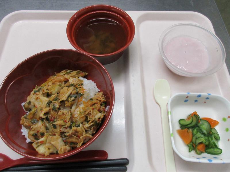 今月は、発酵食品のキムチを使った選択食をお出ししました。