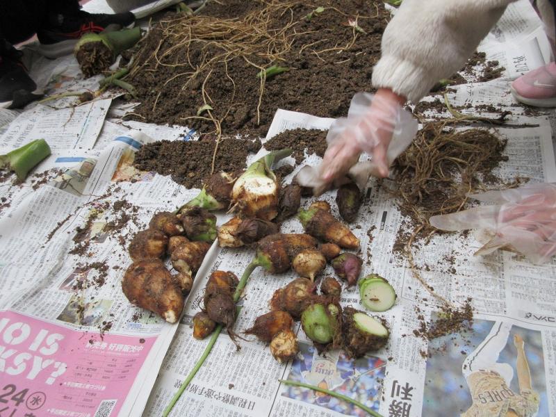 掘り進めて、里芋が出てくると「あった」「また、あったよ」と