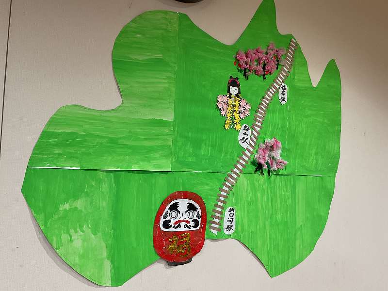 ふくしまマップ制作中 南東北デイサービスセンター八山田:2025.12.18 福島県内の観光名所を紹介する地図を制作中です。皆さんのお気に入りの観光地はどこでしょうか? #南東北#八山田#デイサービス#レクリエーション#創作活動#ふくしま#観光地 絵の具で念入りに色付けします。 ムラが出ないよう塗っていきましょう。 ダルマに”福”の字を入れて… 中通りの名所いくつわかりますか? 前のページに戻る