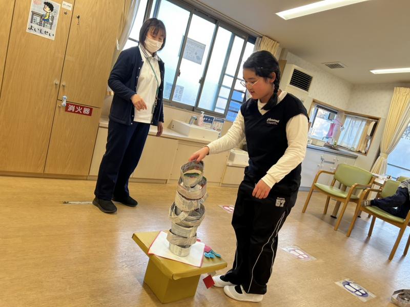 1月のレクリエーション活動では、新聞紙で輪っかを作り、