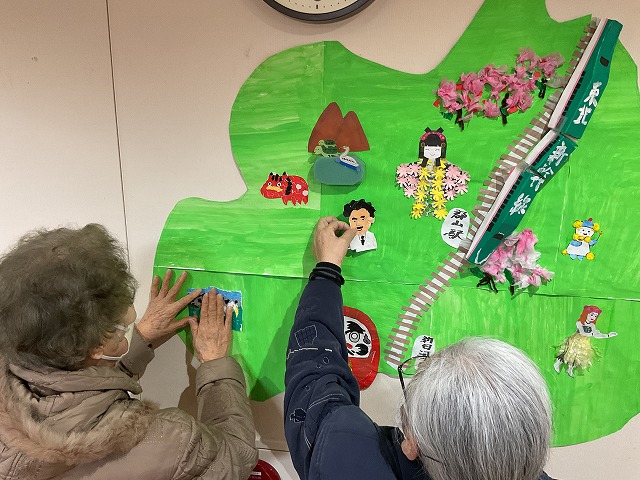 ふくしまマップ制作中 ~途中経過~ 南東北デイサービスセンター八山田:2026.02.12 福島県内の観光名所を紹介する地図を制作中です。観光名所が増えてきました。 #南東北#八山田#デイサービス#レクリエーション#創作活動#ふくしま#観光地 野口英世はこの辺かな… 会津地方は名所が多いですね。 前のページに戻る
