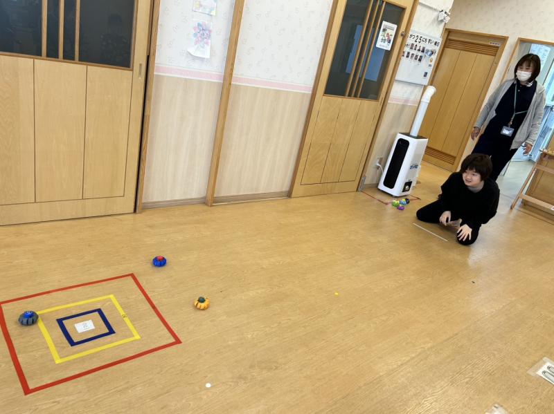 3月のレクリエーション活動では「フロアカーリング」を行いました。みんなで床を滑らせて合計得点を競います!「10点だった~もう一回!」「合わせて100点でした!」などと自己ベストをねらって楽しんでいました。